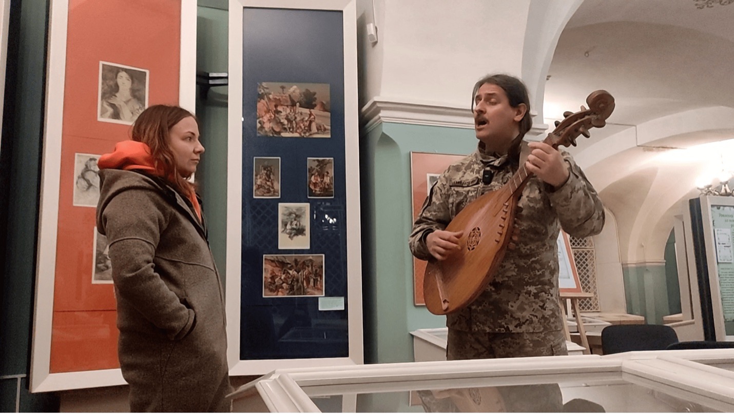 Musician Taras Kompanichenko makes an appointment at the Museum of Books and Printing. He worked there as a leading researcher. However, since the beginning of the full-scale invasion, the most recognizable Ukrainian bandura player has become a sergeant in the Armed Forces of Ukraine. Now his main duties are purchasing jammers for drones and repairing transport, and performances are increasingly held at farewells to fallen soldiers. Kompanichenko, dressed in a pixel, carefully lays out three banduras on the table, each about a hundred years old.